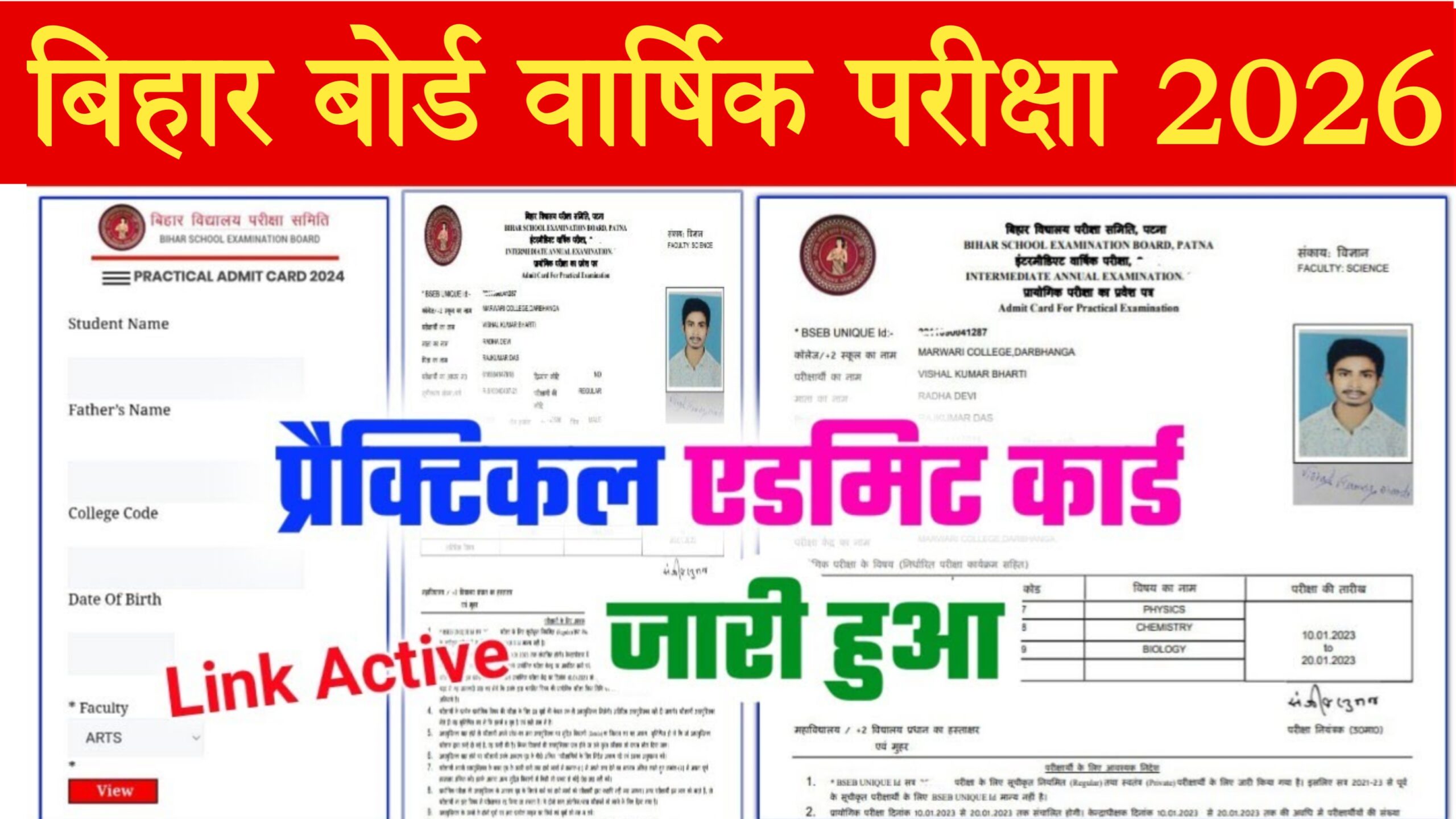 Bihar Board 12th Practical Admit Card 2026 Out Link: Quick Link