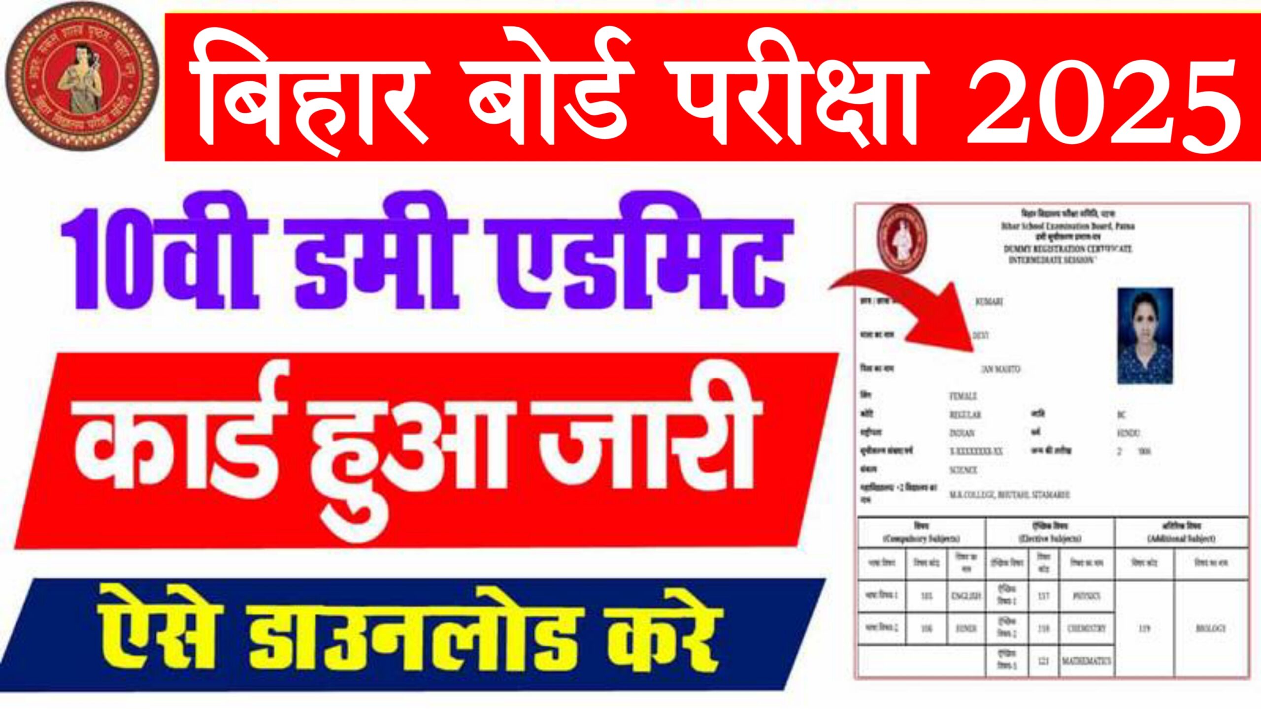 बिहार बोर्ड मैट्रिक डमी रजिस्ट्रेशन कार्ड 2026 सभी रजिस्टर्ड छात्रों के लिए। 12 लाख+ छात्र।