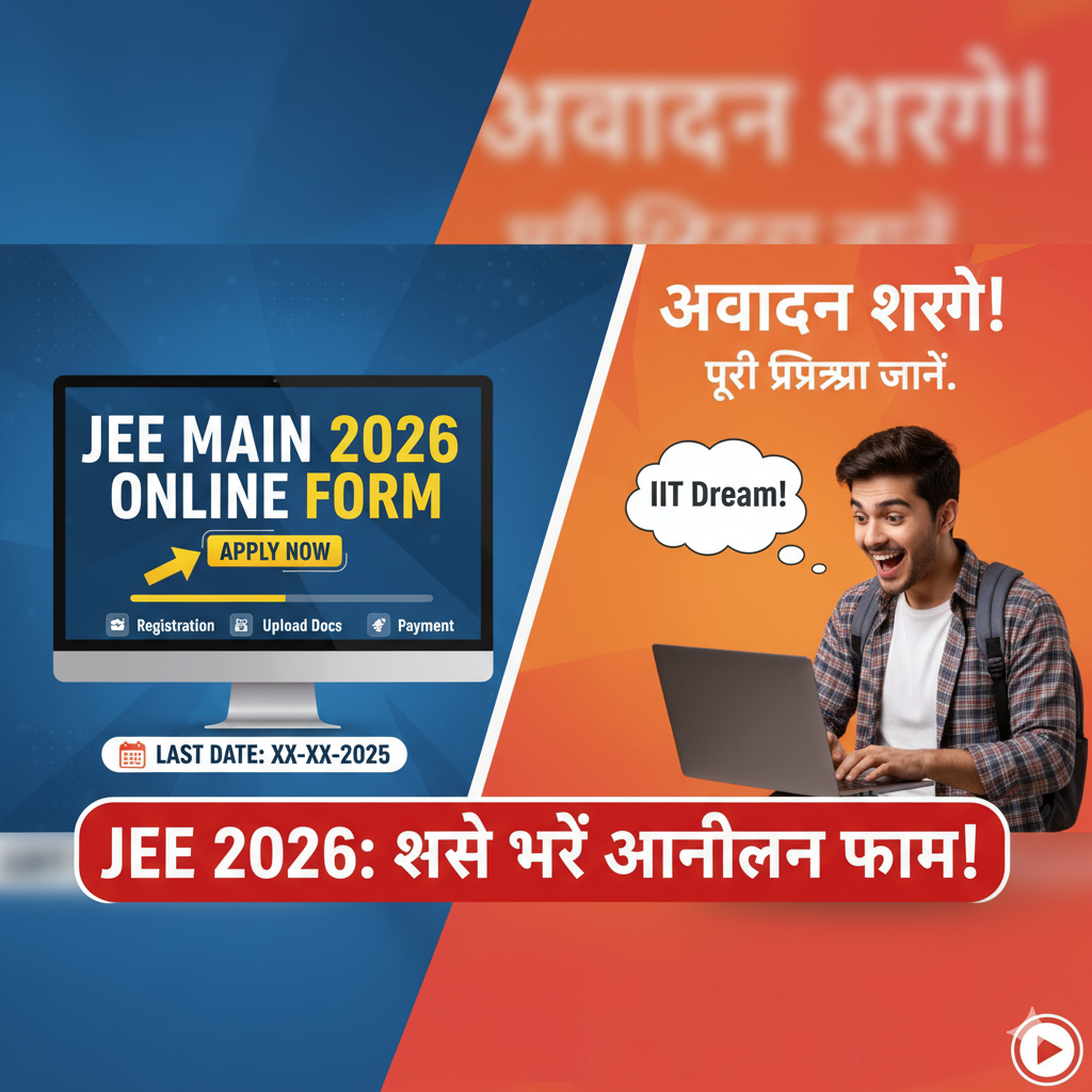 JEE Main 2026 Online Form 31 अक्टूबर से शुरू। jeemain.nta.nic.in पर आवेदन करें। NTA की यह प्रक्रिया छात्रों को सशक्त बनाएगी। अपडेट्स फॉलो करें। शुभकामनाएं!